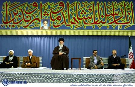تصویر: رهبر معظم انقلاب، هاشمی، احمدی‌نژاد و لاریجانی‌ها