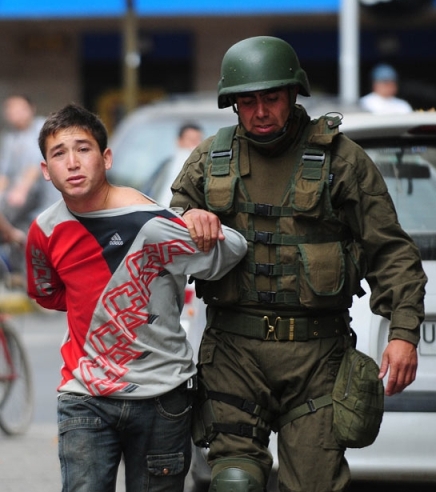 دستگیری یک نوجوان سارق از سوی نیروهای امنیتی شیلی پس از زلزله