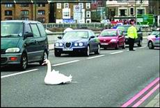 جمهوری اسلامی: افرادي كه با خودروهايشان از روي پل رودخانه تيمز عبور مي كردند براي دير رسيدن به منازلشان بهانه تازه اي داشتند: حضور يك قو در وسط خيابان!