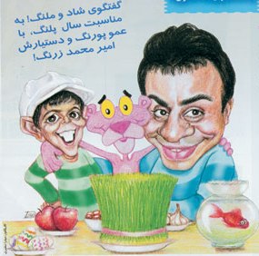 کاریکاتور عمو و پورنگ و دستیارش - روی جلد شماره جدید نشریه طنز و کاریکاتور