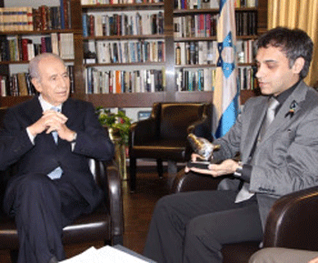 کاسپین ماکان فردی که مدعی است نامزد ندا آقا سلطان از کشته شدگان وقایع پس از انتخابات ایران است ، با شیمون پرز رییس جمهور اسراییل دیدار و گفتگو کرد .