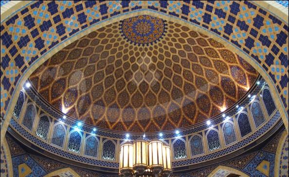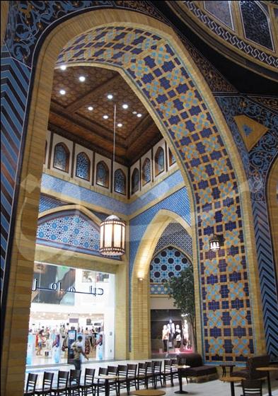 خبرنگار مشرق در این مرکز خرید در ابتدا از ظاهر این دکور برداشت کرده بود که به واقع در و دیوارها کاشی کاری شده است، اما پس از اینکه دکور را از نزدیک مشاهده می کند در می یابد که این سازه به صورت دقیقی با رنگ و چوب ساخته شده است. معماری بخش ایران از معماری مسجد شیخ لطف الله وام گرفته شده است.