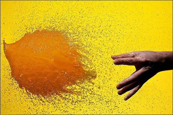 "ادوارد هورسفورد" عکاس خلاق انگلیسی با استفاده از زمان عکس العمل دوربین و کیسه های پر از آب تصاویری بسیار دیدنی از لحظه پرتاب قطرات تهیه کرده است.