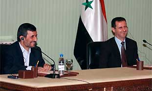 اسد در این دیدار به گفتگوی تلفنی دو سال پیش خود با محمود احمدی نژاد رییس جمهوری اسلامی ایران اشاره می کند و با اشاره به درخواست رییس جمهوری ایران برای عدم اعزام نماینده سوریه به کنفرانس صلح در آناپولیس آمریکا ، می گوید : " در مقابل این درخواست، من به او ( احمدی نژاد) گفتم که این کنفرانس فقط یک گردهمایی برای گرفتن عکس یادگاری است ، اما من به هر حال نماینده ای به آن اعزام می کنم . ما هر کاری را که فکر می کنیم در جهت منافعمان است انجام می دهیم و این مساله ارتباطی به ایران ندارد".