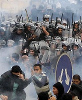 پلیس مصر برای وادار کردن مردم به خشونت و خرابکاری از حربه دیگری هم استفاده کرد. در این شیوه سعی کرد برای مقابله با معترضین به شدت از شیوه های خشن و از جمله شلیک پرحجم گلوله های گاز اشک آور بهره ببرد تا هنگامی که مردم برای حمایت از خود در برابر گاز اشک آور ، آتش روشن می کنند یا از فرط خشم از برخورد شدید نیروهای پلیس، به تخریب مراکز این نیرو بپردازند و دولت هم آن را نشانه "خشونت معترضین" اعلام کند.