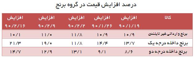 برنج خارجی نیز ، در هفته منتهی به 9 فروردین 9/10(10ممیز9) درصد، در هفته منتهی به 26 فروردین 9/10(10ممیز9) درصد، در هفته منتهی به 2 اردیبهشت 8/11(11ممیز8) درصد ، در هفته منتهی به 9 اردیبهشت 11 درصد و در هفته منتهی به 16 اردیبهشت 1/10(10ممیز1) درصد افزایش داشته است.