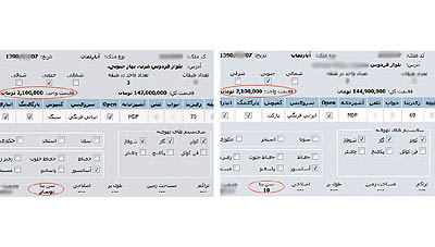 نمونهاي ديگر از اعمال سليقه در قيمت پيشنهادي فروش مسكن، در سامانه ايرانفايل به وضوح مشخص است: مالك يك واحد مسكوني 70 متري در خيابان سازمان برنامه –غرب تهران- واحد 12 سال ساخت خود را با قيمت پيشنهادي يك ميليون و 900 هزار تومان براي فروش گذاشته است و مالكي ديگر در اين منطقه كه واحد 5 سال ساخت با متراژ 70 متر را ميخواهد بفروشد نيز همين قيمت 9/1 ميليون تومان را براي واحد خود در نظر گرفته است.