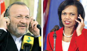 پيش از اين مقام های عراقی نيز ابراز اميدواری کرده بودند که در جريان اين نشست، منوچهر متکی و کاندوليزا رايس با يکديگر گفت و گو کنند، اما تا اين لحظه، تنها تماس اين دو نفر، مکالمه کوتاهی بود که بر سر ميز نهار روز پنج شبه رخ داد.