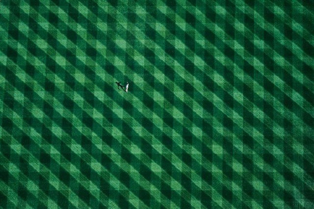 مردی که تنها در یک استادیوم ایستاده است