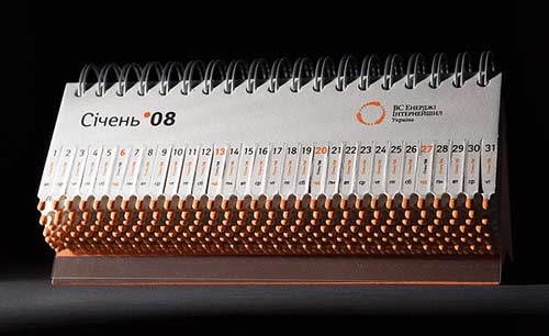 این تقویم رومیزی منحصر به فرد توسط طراح اکراینی «یورک گوتسولاک» طراحی و ساخته شده است. برگه‌های تشکیل دهنده ی روزها در این تقویم هر کدام یک چوب کبریت واقعی با قابلیت اشتعال هستند. هر صفحه ی این تقویم نشان دهنده ی یک ماه است و در ظاهر همانند یک شانه ی چوب کبریتی است که هر دندانه‌اش نشان گر یک روز است.