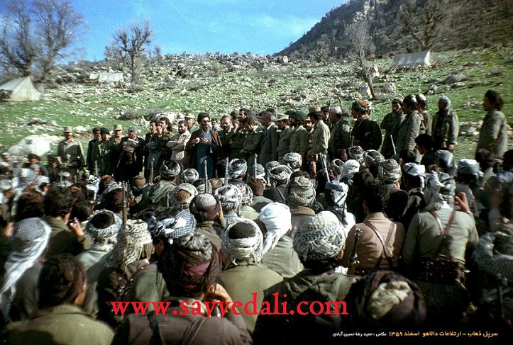سید علی دات کام: تصویری منتشر نشده از مقام معظم رهبری که ایشان را در جمع" پیشمرگان کرد" نشان می‌دهد این تصویر مربوط به سال 1359 و ارتفاعات "دالاهو" در استان کرمانشاه است.