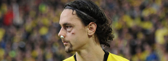 نون سبوتيچ مدافع دورتموند شنبه پردردي را پشت سر گذاشت و بعد از آنکه کرگياکو مدافع وولفسبورگ با ارنج به او ضربه زد با صورتي به شدت اسيب ديده زمين را ترک کرد