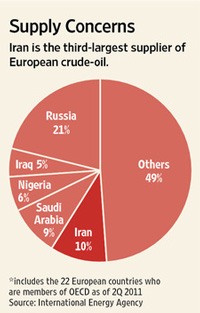 يك منبع آگاه اروپايي در اين باره به وال استريت ژورنال مي گويد :‌" ‌تحريم نفتي اروپا عليه ايران بيشتر به ضرر پالايشگاه هاي اروپايي خواهد بود تا ايران ؛ چرا كه ايران مي تواند  نفت خود را به جاي اروپا به ديگر كشورهاي آسيايي بفروشد."