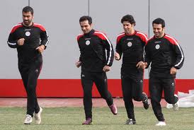 حمید علی عسگر با لباس متفاوت نسبت به دیگران تمرین میکرد.