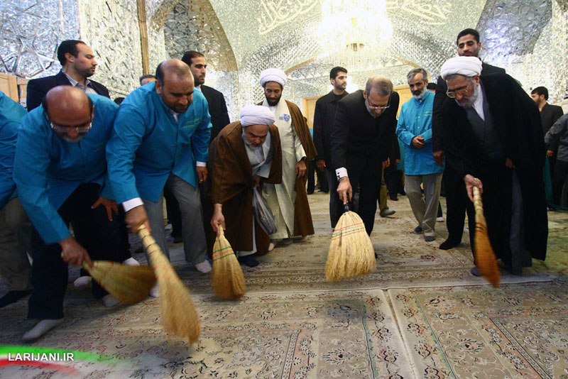 لاریجانی در غبارروبی حرم حضرت معصومه(عکس)
