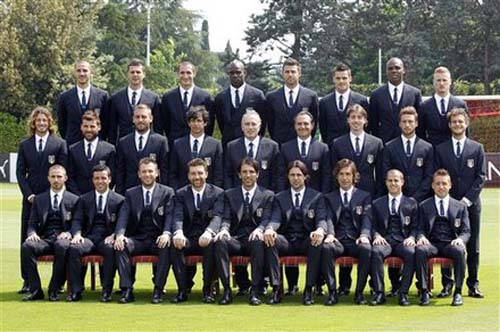 ردیف پایین، از چپ: فابیو بورینی، آنتونیو دی ناتاله، آنتونیو کاسانو، مورگان سانتیس و جیان لوییجی بوفون و سالواتوره سریجیو (دروازه بان ها)، سباستین جیووینکو، مانوئله جیاچرینی