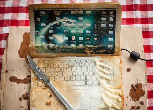 لپتاپ اپل به روغن در يك ماهي تابه گود به عكاسي از آنها پرداخته است.