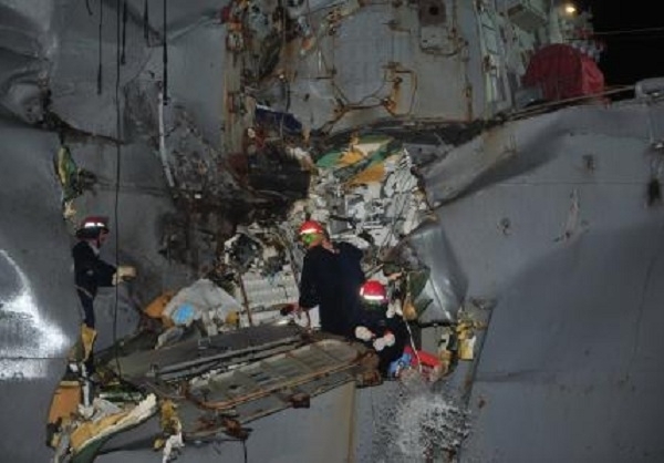 به گزارش فارس به نقل از شبکه ان بی سی نیوز، نیروی دریایی آمریکا ضمن انتشار بیانیه ای در مورد تصادف ناوشکن "یو اس اس پورتر" با یک کشتی نفت کش متعلق به ژاپن تصویری از ناو آسیب دیده خود منتشر کرد.