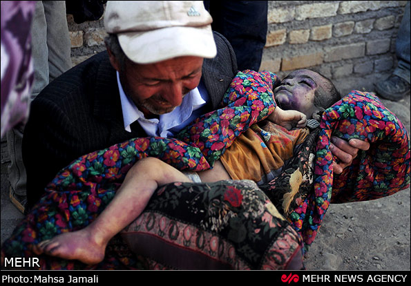 متاسفم برای کارکنان عصر ایران و اونی که این خبر را داده. اینقدر اینها خودشون تو رفاه زندگی میکنن که به این عکس لقب غم انگیزترین داده. آخه یکی نیست بهشون بگه این فقط یکی از صحنه های غم انگیز این ماجرای تلخه. تو میتونی درک کنیصحنه ای که 4 تا بچه قد و نیم قد بالای سر جنازه مادرشون ایستادند و صداش میزنند و گریه میکنند؟ تو میتونی درک کنی صحنه ای که پدری بالای سر نعش جوانش ایستاده و کسی نیست حتی دلداریش بده؟ تو میتونی درک کنی صحنه ای که فقط یه دختر 11 ساله از یه خانواده 8 نفری باقی مونده؟ مطمئنانمیتونی چون تو تهران نشستی زیر کولر گازی و داری از این زلزله منافع خودتو دنبال میکنی. کیه که ندونه عصر ایران این همه جلیز و بلیزمیکنه واسه زلزله زده ها نیست که واسه کوبیدن حریفاش تو انتخابات آینده ریاست جمهوریه؟ برید و از خدا بترسید که انشالله همین بلای زلزله را تو تهران به سرتون بیاره تا ببینید رسمش نیست به جای کمک فقط داغ ما رو تازه کنید.