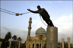 عراق مجسمه صدام، رهبر پیشین این کشور را پس از سرنگونی وی به پایین