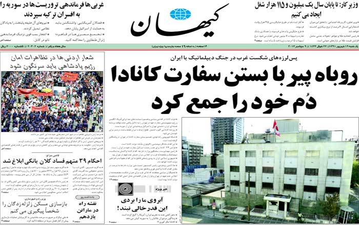 تیتر کیهان درباره تعطیلی سفارت کانادا (عکس)