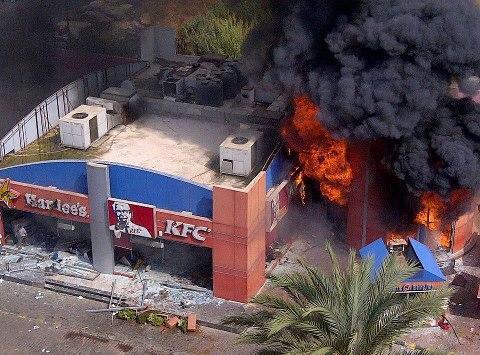 اعتراضات در شهر طرابلس در شمال لبنان و به آتش کشیدن رستوران آمریکایی "کی اف سی"