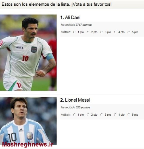 مشرق - یک سایت اسپانیایی برای انتخاب از میان چهره‌هایی چون علی دایی، جکی چان، مسی، فدرر، دیوید بکهام و... یک نظرسنجی گذاشته است.