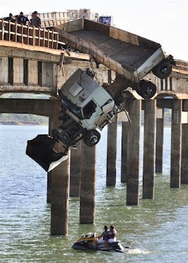 نحوه آویزان شدن تریلی از پل! (عکس)