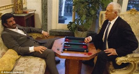 عکاس بریتانیایی تصمیم گرفت از تصاویر رئیس جمهور ایران و نخست وزیر اسرائیل برای تهیه بخش های مربوط به دعوا و درگیری فیزیکی ، جنگ با شمشیر ، بازی شطرنج ، بازی های کامپیوتری و ... میان آنها کمک بگیرد.