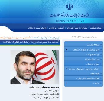 در زیر صفحاتی از سایت وزارت ارتباطات را ملاحظه می کنید:
