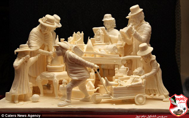 این هنرمند 49 ساله می گوید: من مجسمه سازی با استفاده از کره را 30 سال پیش شروع کردم در حالی که آن زمان به عنوان آشپز مشغول به کار بودم. این کار ظریف و پر زحمتی است چرا که نیاز به ریزه کاری های فراوانی دارد.