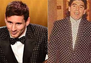 عصر ایران - در مراسم اهدای توپ طلای سال 2012، لیونل مسی همانند دیه گو مارادونا لباس پوشید.