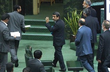 اين بار اما احمدي نژاد برخلاف حضور قبلي اش در مجلس حرف اش را زد و نرفت ؛ البته می خواست برود ولی رئیس مجلس به او گفت که بنشیند و جوابش را بگیرد و بعد برود. او  نشست و با تمام تيك هاي عصبي اش اظهارات 5 ساعته نمايندگان و پاسخ هاي لاريجاني را شنيد و اين لاريجاني بود كه از همان كليدواژه هاي خود احمدی نژاد استفاده و او را محكوم كرد و اين شايد آغازي باشد بر پايان دوره سياسي محمود احمدي نژاد.