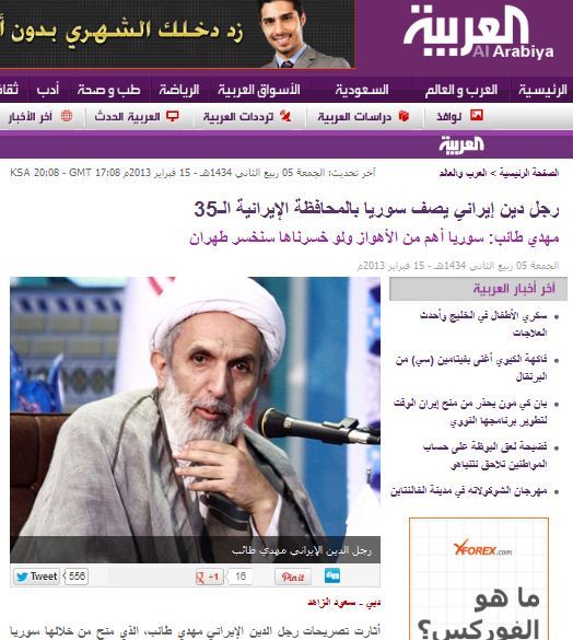 همین دیروز ، ریاض حجاب ، نخست وزیر فراری حکومت سوریه در مصاحبه با العربیه گفت: سوریه در اشغال ایران است ، کسی که سوریه را اداره می کند ، بشار اسد نیست ، بلکه قاسم سلیمانی، فرمانده سپاه قدس ایران است! آیا اظهارات جناب طائب ، تقویت کننده این ادعاهای ضد ایرانی نیست؟!