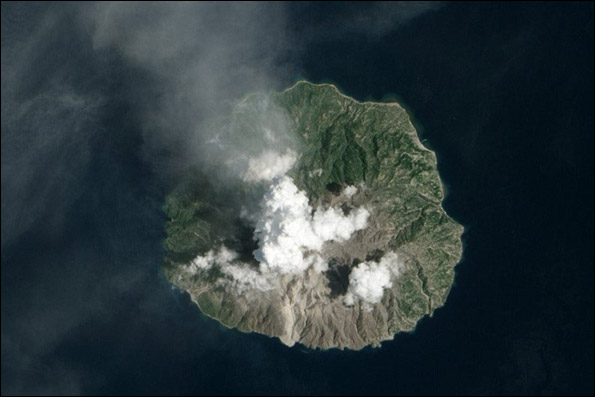 حالی که کوه آتشفشانی کنار آن هیچ فعالیتی از خود نشان نمی دهد.