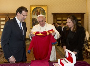 سایت گل- ماریانو راخوی، نخست وزیر اسپانیا در مراسم برگزار شده در واتیکان حضور یافت و پیراهن تیم ملی اسپانیا، تیم قهرمان دنیا را به پاپ فرانسیسکو، پاپ آرژانتینی واتیکان هدیه داد.