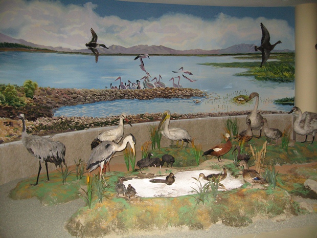 در سالن های موزه های تاریخ طبیعی که به منظور اطلاع رسانی و آموزش همگانی طراحی میگردند ، نمونه های زیست گاه های اقلیم های مختلف مانند زیست گاه های تالابی ، خشکی ، کوهستانی ، دریاچه ای و ... به نمایش در آمده و لاشه حیواناتی که به هر دلیلی از بین رفته اند و معمولا از شکارچیان غیر مجاز توقیف میگردند ، تاکسیدرمی شده و با طبقه بندی علمی در سالنهای مختلف و در زیست گاه های مربوطه جهت آموزش و معرفی گونه های مختلف و خانواده آن « مورد استفاده قرار میگیرد ، بطور مثال بازدیدکنندگان با دیدن گونه های مختلف پرندگان و توضیحات ارائه شده توسط کارشناس مربوطه ، متوجه میگردد که چگونه میتوان پرندگان را صرفا از شکل منقارشان شناخت و تشخیص داد که این پرنده گوشت خوار بوده ، یا مواد غذایی خود را روی تنه درخت تهیه کرده و یا از سطح یا حتی زیر آب تهیه می نماید .