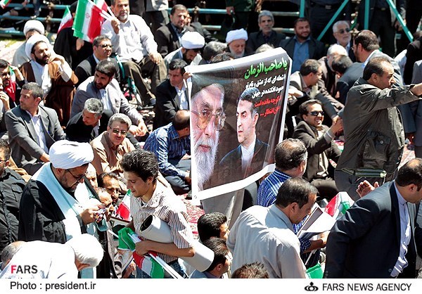 چاپ و توزیع بنر مشایی - رهبری در سفر احمدی نژاد به اصفهان (عکس)
