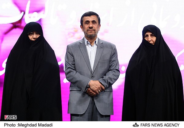 پروین احمدی نژاد، محمود احمدی نژاد و اعظمالسادات فراحی همسر رئیس جمهور در همایش تجلیل از بانوان برگزیده سال 92