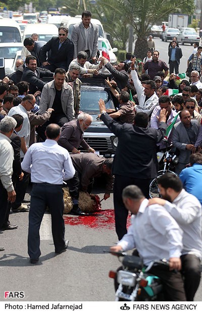 قربانی کردن گوسفند مقابل احمدی نژاد (عکس)