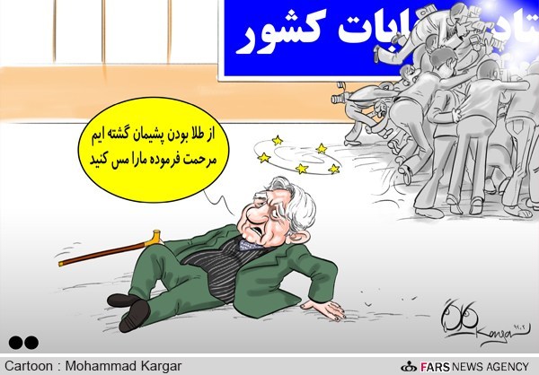 حضور عزت الله انتظامی کنار مشایی زمان ثبت نام کاندیداتوری (کاریکاتور)
