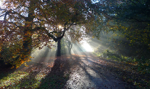 تابش نور از میان شاخ برگ های درختان در پارک "چستر" در انگلستان