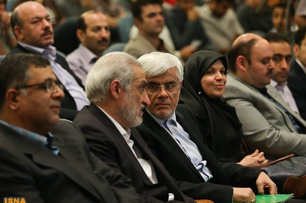 مراسم سخنرانی محمدرضا عارف در دانشگاه علوم پزشکی شهید بهشتی.