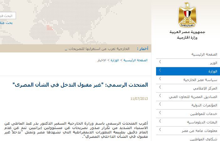 در هفته گذشته هم اظهارات عباس عراقچی سخنگوی وزارت خارجه ایران در انتقاد از دخالت نظامیان در سیاست و سرنگونی مرسی، انتقاد و اعتراض وزارت خارجه مصر را به دنبال داشت.