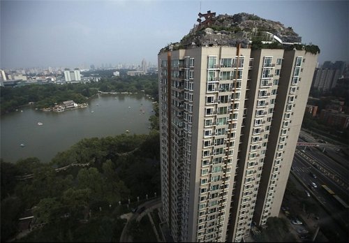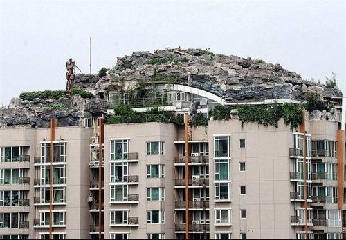 مقامات شهرداری پکن قصد دارند یک ویلای ساخته شده در سقف یک ساختمان مسکونی 26 طبقه را تخریب کنند. این ویلا با تخته سنگ و انواع گیاهان پوشانده شده است.