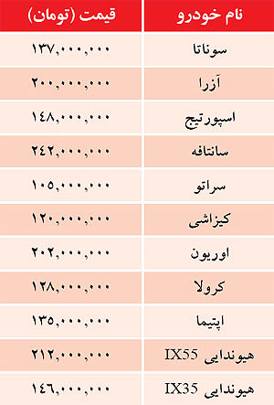 آخرین قیمت "خودروهای وارداتی" در بازار (جدول)