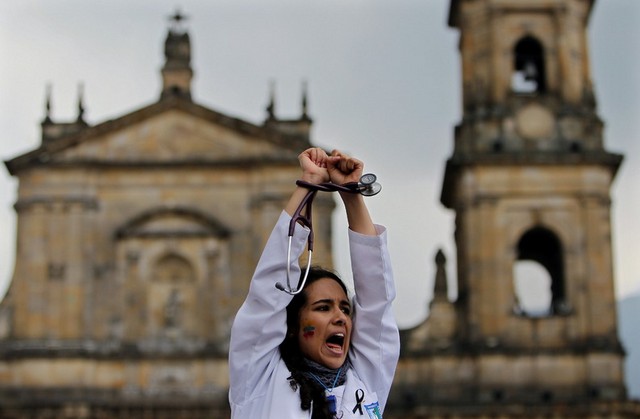 تظاهرات کارمندان بخش سلامت و بهداشت کلمبیا در اعتراض به لایحه اصلاحات بهداشتی