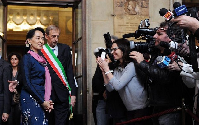 آنگ سان سوچی رهبر دموکراسی خواهان میانمار در شهر تورین ایتالیا