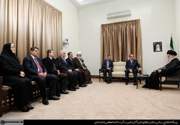 رهبر انقلاب همچنین از آقای جلال طالبانی رئیس جمهور عراق بعنوان دوست خوب و صمیمی جمهوری اسلامی یاد و برای ایشان آرزوی سلامتی کردند.