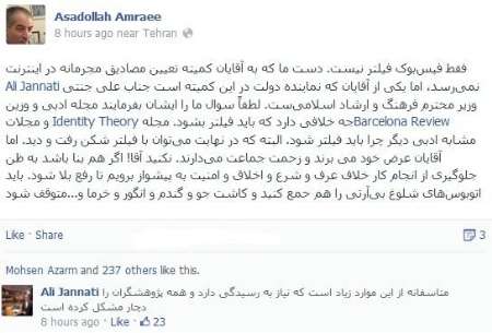 اظهارات فیس‌بوکی وزیر ارشاد درباره فیلترینگ (+عکس)